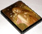 This fascinating box has been painted by Taleeva A. Here she depicts the young beautiful girl who has wrapped herself in the light tissue after bathing in the river. Multicolored butterflies hover over her as if they want to say how beautiful she is. The girl looks at the weightless butterflies, and enjoys a nice sunny day.