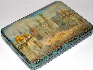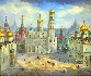 Description: This splendid box is a creation of Rinat Yunusov from the village of Fedoskino. Here he depicts the Cathedral Square of the Moscow Kremlin. In the middle of the scene we can see the Belfry of Ivan the Great, and behind it the St. Basil's cathedral is seen. On the left the artist depicts the Assumption Cathedral, while on the right there is the Archangel Cathedral. In the far background we can see the fragment the red bricked Kremlin's wall and the famous Stalin's skyscrapers.