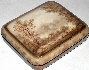 Gold scan pattern composed of tiny beads hand punched from gold metal sheets, and glued to the box manually decorate the edges of the lid. On the box's sides Gogina paints brown blurry spots against the light brown background creating the illusion that the landscape extends on the sides. The exterior bottom is covered with black lacquer, while the interior is traditionally red.