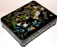 Description: This enticing box is a creation of Igor Evmenenko from the village of Fedoskino. It shows the dragonflies hovering over flowers. The scene is painted in bright oils in the realistic style with photo quality accuracy. The fragile, transparent wings of the dragonflies are detailed with gold paints. The painting is extended on the box's sides where the artist continues to draw flowers and various insects. An enchanting work.