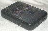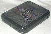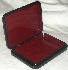 The box is constructed from paper-mache. Black lacquer covers the exterior and red lacquer covers the interior of the box. A hinge is fastened to the left of the composition. The box rests on a flat bottom. The work is signed with the name of the artist.
