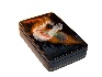 This beautiful Fedoskino box has been painted by Frolova Tatyana. It shows a scene from Pushkin's fairy-tale “Ruslan and Ludmila”. Here we can see the evil dwarf magician Chernomor kidnapping Lyudmila, and carrying her to his kingdom. The figure of Chernomor and especially his beard shine brightly in the darkness of a night; this effect has been achieved with the help of gold powder. A piece of mother-of-pearl creates brilliance of Lyudmila's sarafan. Gold paint is used to detail the costumes of the characters, and to paint the stars that shimmer in the night.