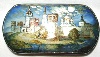 This beautiful box painted by Bazhenov shows an impressive view of the white-stoned Rostov Kremlin situated in the ancient Russian town of Rostov. The white stoned cathedrals encircled by the massive defensive wall are lit by the cold moonlight in the darkness of a night.