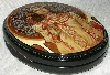 The box is made out of high quality paper-mache. Black lacquer covers the exterior and red lacquer covers the interior of the box. The lid is hinged at the left and the box rests on a flat bottom. Signed with the artist's name, the village of Fedoskino, and the year of 2006.