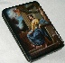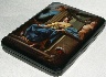 Description: Alimpiada Dokuchaeva is the author of this beautiful box that shows the Greek goddess sitting on the throne. This painting is a replica of a canvas piece. Dokuchaeva has done a beautiful job of bringing this expressive beauty to life in a miniature state through masterful painting techniques. Painted in oils, this piece shows three-dimensionality through highlights and shadows.