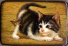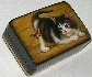 N. Kosheleva is fond of cats, and likes to depict these graceful animals on her boxes. Here she has painted a charming kitten hunting after a butterfly. The palette is chosen to give the kitten a touch of realism. The brushwork is very intricate and even allows a viewer to see the kitten's fur as if it were really furry, and makes the butterfly almost weightless as it would be in the wilderness.