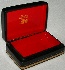 The box is constructed from paper-mache. Black lacquer is used to paint the exterior of the box while red lacquer completes the interior of the work. The box's sides are decorated with two parallel gold lines. A hinge is fastened to the top of the scene, and the box rests on a flat bottom. The Fedoskino "troika" insignia can be found on the interior of the lid. The work is signed with the artist's name.