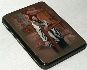 Description: This portrait of a priest reading a prier book on the porch was created by Fedoskino artist Yevgeniy Dokuchaev. An established artist, Dokuchaev has received several awards and distinctions, and is a very talented portrait artist. By painting in oils and keeping the central figure in this composition in natural proportions, the artist creates realism as well as delicacy.