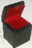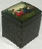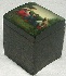 The box's exterior is covered with dark green oils mixed with aluminum powder. Its interior is traditionally red.