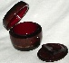 The box is of an original design, and may be placed on the stand. Both the box and the stand are constructed from paper-mache and covered with black lacquer. The interior of the box is covered with red lacquer. To imitate a stone color, the box's sides and the stand are hued with crimson paint while the black lacquer is also apparent. The portrait is framed with a thin gold line. Two parallel gold lines wrap around the box's sides. The box's lid is hinged from the top of the portrait, and the box rests on a flat bottom. The work is signed with the artist's name, Fedoskino, the title (“The Jug of Wine”) and the year of 2008.