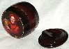 Description: Mishin from the village of Fedoskino is the artist who painted this superior piece of Russian lacquer artistry. The artist has masterfully drawn the portrait of a happy man with a jug of wine. To achieve a three-dimensional effect the artist has used a special technique. He has used a round-shaped piece of mother-of-pearl that shines brightly with a full spectrum of a rainbow as a background for the portrait. This effect is strengthened by a thick layer of translucent lacquer between a piece of mother-of-pearl and the portrait. Another shining round-shaped piece of mother-of-pearl covered with a thick layer of translucent lacquer decorates the box's exterior bottom.