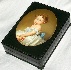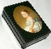 The portrait is framed with a gold line, gold line also encompasses the edges of the lid; the box's sides are decorated with two parallel gold lines.
