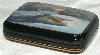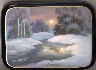 The scene is mostly painted in white and blue tones that fit excellently for reproduction of a winter landscape. Mother-of-pearl is used to create the sun reflection on the water. The trunks of some trees are highlighted with aluminum paints.