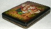 Description: This beautiful box is a creation of Tatyana Gomzina. It shows two beautiful girls dressed in the Russian peasant costumes looking out of the window of a wooden house. Romantic and elevated mood is reflected on their faces. The girls are waiting for their suitors who are about to appear on the road. Romantic and elevated mood is reflected on their faces.