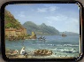 Description: This beautiful seascape has been created by Ivan Buzovkin from the village of Fedoskino. A fisherman sits on the seashore near his boat, and looks pensively at the sky-blue sea.