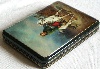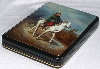 exterior of the box while red lacquer completes the interior of the work. A hinge is fastened to the left of the scene, and the box rests on a flat bottom.