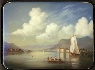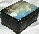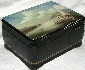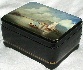 Description: This beautiful landscape has been created by Ivan Buzovkin from the village of Fedoskino. The mirror like surface of the river is still. People enjoy boating down the river at a sunny summer day. The scene is painted in the realistic style. The artist achieves some very good textures here. The clouds look light and fluffy. The scene is quite calm and peaceful. The scene is framed with a gold line; the box's sides are decorated with two parallel gold lines.