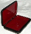 The box is constructed from paper-mache. Black lacquer is used to paint the exterior of the piece while dark red lacquer completes the interior of the box. A hinge is fastened to the top of the composition to be used for ease of opening, and the box rests on a flat bottom. The lid's artistry is framed with a thin line of gold paint; the box's sides are decorated with one more gold line. The work is signed with the artist's name.