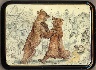 The box continues Tipyakov's series of works that can be called “Animals”. It shows a humorous scene. Two bears have sneaked into the bee-garden to steal honey, and the competition between them begins. Each bear wants to eat as much honey as it can but its rival has the same aims. The bears start battling for honey. They roar so loudly that the whole village can hear them. The bee-keeper is very frightened. He rushes away from the bears to call people that can help him.