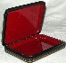 The box is constructed from paper-mache. Black lacquer covers the exterior of the box while red lacquer is used to cover its interior. The scene is framed with a gold line; two parallel gold lines decorate the box's sides.The lid is hinged from the top of the scene, and the box rests on a flat bottom. The work is signed with the artist's name, the title (“Bears Battle for Honey”), and the village of Fedoskino.
