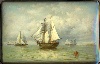 This marvelous marine scene is a creation of Natalya Gogina. Here she has drawn a quite harbor, and several ships anchored not far from the shore. Light grey and blue tones help to produce an atmosphere of a dull, cloudy morning. The scene is quite calm and peaceful.
