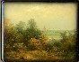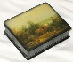 There is a small river drawn on the back side of a box.The artist picked up very smooth yellow and green pallete of colors to this work. These colors are bringing very realistically the atmosphere of the season-late summer or the begging of fall!