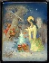 Description: This beautiful box is a creation of Igor Evmenenko from the village of Fedoskino. It shows the children who met the angel in the forest on Christmas Eve. The children peep out of the tree and observe the angel who is going to decorate a small fir tree with bright multicolored balls.