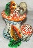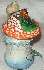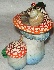Known for her clever boxes with three-dimensional elements carved from them, Karina Kersilyan of Fedoskino takes her art a step further by making the entire piece more a sculpture than a box! These mushrooms as it has been said above peep from three-dimensional leaves, a three dimensional snail whose shell looks absolutely natural crawl along the cap of a big mushroom. What's more surprising is that the top section of the big mushroom opens on a hinge to reveal a small square compartment--a box after all!