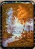 Description: This peaceful early autumn landscape has been painted by Pavel Sladkov. The river flows along the grassy banks. The trees and bushes covered with yellow and orange leaves look so beautiful! To reproduce realistically a chosen season the artist has used orange and yellow oils. We can see a small footbridge in perspective of the composition. The scene is framed with gold beads.