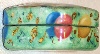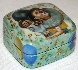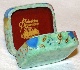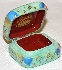 The light green tone has been also chosen to cover the box's exterior but this light green area is supplemented with green blurry spots of a darker tone. The box's interior is traditionally red. On the box's sides the artist has painted multicolored balloons, and signs of sheet music shimmering with gold metal leaf inlay.