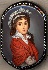 Description: Tatiana Skripunova from the village of Fedoskino is the author of this beautiful woman's portrait. A depicted woman gazes pleasantly at the viewer from beneath a cascade of soft brown curls. Her large brown eyes and faint smile create a flattering and sentimental portrait. She holds herself with an elegant posture, creating a regal appearance despite her simple clothing.
