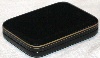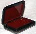 The box is constructed from paper-mache. Black lacquer is used to paint the exterior of the box while red lacquer completes the interior of the work. A hinge is fastened to the left of the portrait, and the box rests on a flat bottom. The work is signed with the artist's name.