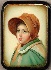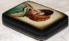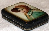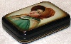 Description: This exquisite portrait of a girl wearing a bonnet was painted by Marina Chikvasova of Fedoskino. The portrait is masterfully executed--tone, shade and light are perfect. Particularly impressive is the fine detail of the girl's face and her clothes. A thin gold line is used to frame the portrait while two parallel gold lines wrap around the box's sides.
