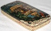 Description: This beautiful box is a creation of the leading Fedoskino artist Vladislav Maslov. The work is called “A Forest Fairy-Tale”, and shows a maiden looking out of the beautiful house built in the thicket of the forest. The artist has also filled the composition with the images of a cat, a frog, a grasshopper, a raven and a variety of various plants and trees.