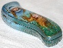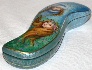 Description: This originally shaped box is a creation of Mishin from the village of Fedoskino. Its upper part features the girl who symbolizes winter season. Drawn against the winter landscape, she is dressed in the warm clothes. Its bottom part shows the girl who symbolizes summer season. She is drawn against the summer landscape, and wears the diadem made out of wild flowers.
