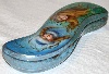 The box is constructed from paper-mache. A hinge is fastened to the left of the composition, and the box rests on a flat bottom. Signed with the artist's name, Fedoskino, and the year of 2007.