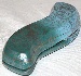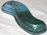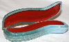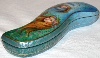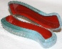 The box's exterior is covered with turquoise paint, and studded with silver blurry spots. The interior is traditionally red.