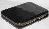 The box is constructed from paper-mache. The exterior of the box is painted with black lacquer while the interior is completed with dark red lacquer. A hinge is fastened to the top of the composition. The box rests on a flat bottom. The work is signed and dated (2008) by the artist.