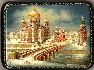 Description: Mikhail Tugarinov from the village of Fedoskino created a glorious sight of the Temple of Christ the Savior. This magnificent building is located in the center of Moscow, not far from the Kremlin. It was constructed on a vow given by sovereign Alexander I in gratitude for saving fatherland "from the Gauls invasion". On September 10, 1839 the solemn laying of the present temple in Russian-Byzantian style took place. It was constructed under the project of architect K.A. Ton, at the expense of the Treasury with attraction of people's donations. The temple was consecrated on April 10, 1883 during the days of crowning of the emperor Nikolay I. Architect K.Ton realized the project of a five-domed temple with a big central and four angular turrets with 14 bells. The banners and keys of the conquered cities were transferred to the temple. First electric street lamps in Moscow appeared on the square in front of the temple. The height of the temple was 103 m. On December 5, 1931 the temple was blown up. Subsequently the foundation ditch was used for the construction of swimming - pool " Moscow ". In 1994 the pool was closed. On January 1995, the solemn laying of the revived temple took place. Now the temple has an active museum where excursions are held and the viewing platform is arranged.
