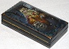 Description: This interesting work has been painted by Shavyrin from the village of Fedoskino. It shows the beautiful, young sorceress gathering healing herbs in the forest at night. She is accompanied by the wolf and the owl that protect her. The full moon illuminates everything in the forest, and the sorceress easily finds the herb she needs.