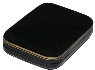 The outer edge of the lid is painted with a fine band of gold paint. The base of the box has two lines done in gold painted parallel to each other, the bottom line slightly thicker than the other.