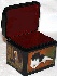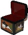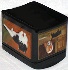The box is constructed from paper-mache. Black lacquer is used to paint the exterior of the box while red lacquer completes the interior of the work. The lid is hinged, and the box rests on two legs. The work is signed with the artist's name.