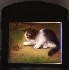 Irina Kosheleva is fond of cats, and likes to depict these graceful animals on her boxes. On the box's lid and on each of its sides the artist has painted charming cats of various breeds and colors. The palette is chosen to give the cats a touch of realism. Silver dust is spread throughout each of the scenes to fill them with a sparkling light. Each scene is framed with a thin gold line.