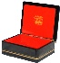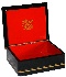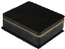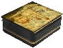 The sides of the box are decorated with two parallel gold lines. The box is constructed from paper-mache. Black lacquer is used to paint the exterior of the box while red lacquer completes the interior of the work. The lid is hinged from the top of the composition, and the box rests flat. The Fedoskino "troika" insignia can be found on the interior of the lid. The box is signed with the artist's name, village and year (2003).