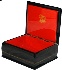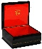 The box is constructed from paper-mache. Black lacquer covers the exterior and red lacquer covers the interior of the box. The sides of the box are decorated with elegant gold patterns. A hinge is fastened to the left of the composition. The box rests on a flat bottom. It is signed with the name of the artist, the village of Fedoskino, the title and the year (1994). A fine work!