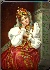 She wears traditional Russian upper-class clothing, and is probably the daughter of a wealthy merchant or perhaps even a nobleman. Her white sleeves are masterfully painted, with shading and design to show three-dimensionality.