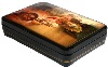 The scene is framed with a gold line; the box's sides are decorated with two parallel gold lines.
