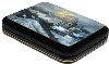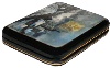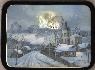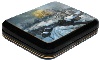 Sergey Parmeonov of Fedoskino painted the winter landscape on this really beautiful box. The fresh snow blankets the ground and although the wind is still, you can feel the cold bite of the evening on your skin. The snow reflects the last light of the setting sun. The beauty of a small Russian village is masterfully expressed here. Dark blue tones of oils help to represent a quiet, winter evening. A piece of mother-of-pearl is set into the sky to create a sparkle of the sunset. Aluminum paint is used to reproduce brilliance of the icy river. The scene is framed with a gold line; the box's sides are decorated with two parallel gold lines. The box is constructed from paper-mache. Black lacquer is used to paint the exterior of the box while red lacquer completes the interior of the work. A hinge is fastened to the top of the scene, and the box rests on a flat bottom. The work is signed by the artist.