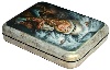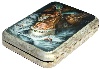 Description: This beautiful Fedoskino box is an original work of Marina Khasanova. It depicts the Snowmaiden caressing the little hare in the winter forest. This sentimental scene is dramatically painted that proves the artist's professionalism. Khasanova's individual style is reflected in each minute detail throughout the composition including fragile snowflakes falling down on the Snowmaiden's costume and bullfinches' (name of the birds painted here) breasts shining with gold. On the box's exterior bottom Khasanova has painted in tempera paints one more composition that depicts a flower covered with the first snow.