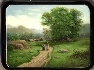 Description: M. Nazarova has painted this peaceful summer landscape. Two women walk slowly along the road and talk. Behind them the artist has painted the small village built not far from the mountains. Here the artist has masterfully expressed beauty of mountainous scenery using various shades of green and grey tempera paints.